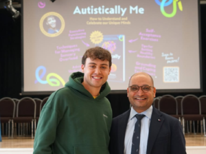 He described experiencing the world differently—often feeling, as he put it, “like I was on the outside looking in… an alien in a world that wasn’t built for me.” Acting eventually became his way to express what words could not, a path he credits with transforming his life. “I’m proud to show that autistic people are more than stereotypes—we are individuals with unique voices, even if they don’t always come in the form YOU expect,” he told students.
